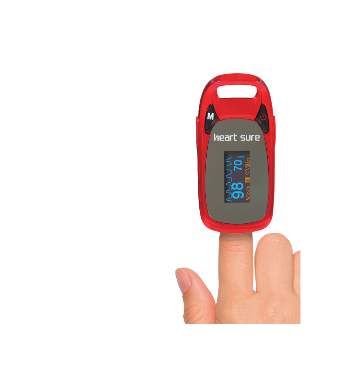 Please read the full Instructions for Use provided with the product prior to using. •Press the power button for 2 seconds to turn the Pulse Oximeter on •Open the clamp, then place one finger into rubber hole of the Pulse Oximeter (it is best to put the finger as far in as possible) with nail surface upward, then release the clamp to shut •The data may take a few seconds to appear while a reading is obtained