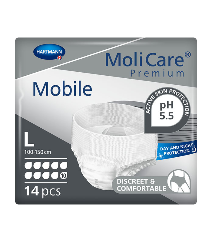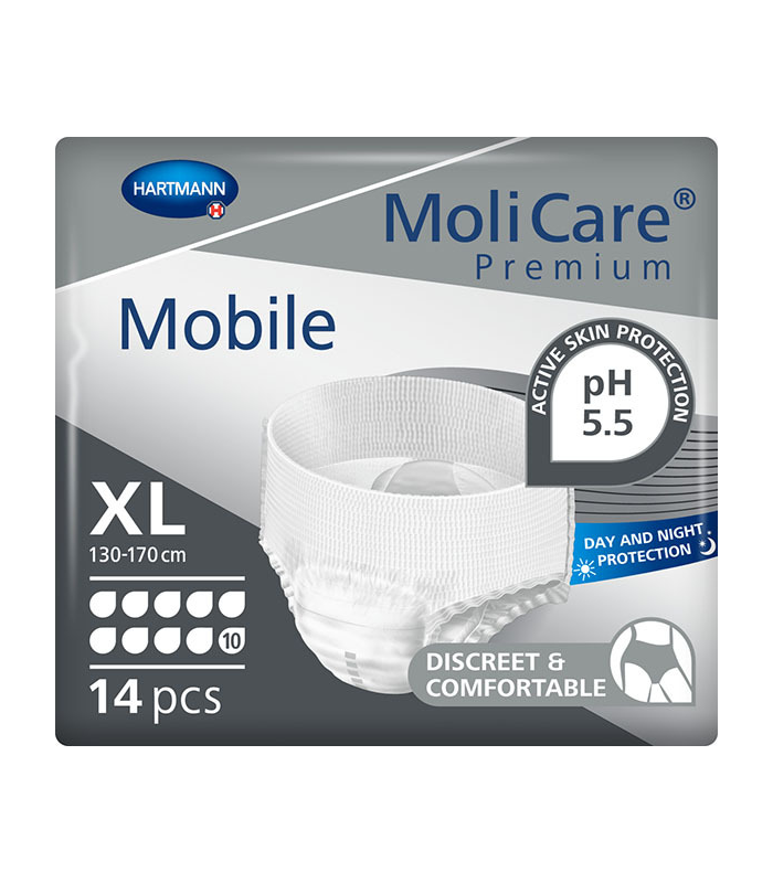 MoliCare Premium Mobile 10 Drop is a premium pull up for severe incontinence and ideal for day and night protection.