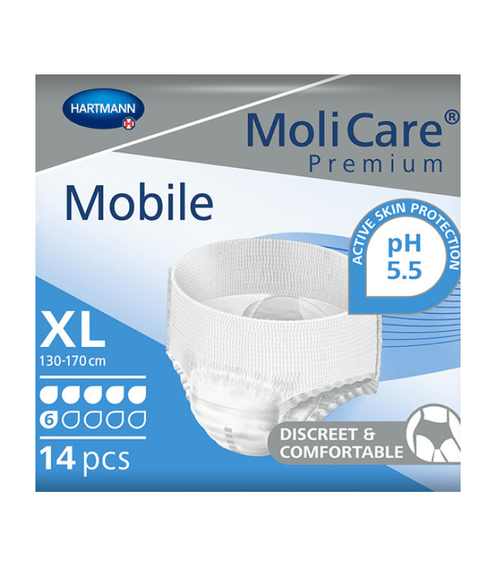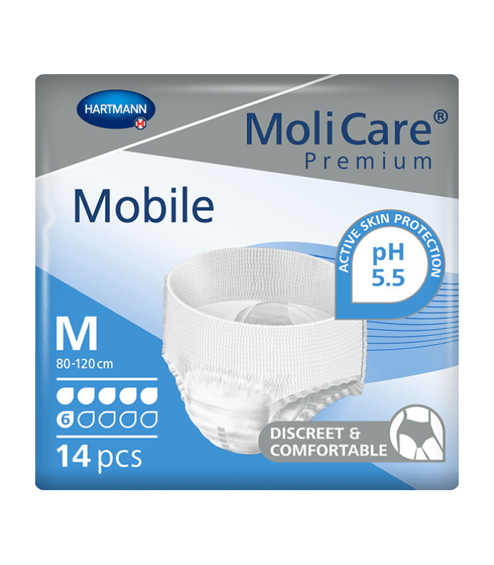 MoliCare Premium Mobile 6 Drop is a premium pull up for moderate incontinence and ideal for active living.