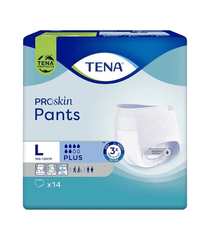TENA Proskin Pants Plus are soft and comfortable incontinence pants designed for women and men, great for use during the day.